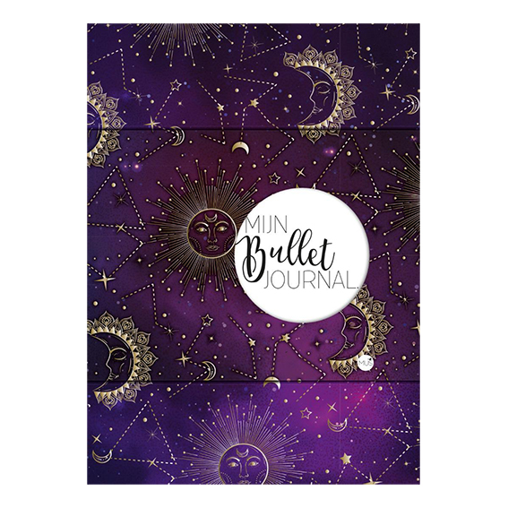 De basis voor een bullet journal is een leeg notitieboek met dotted (stipjes) papier. Deze heeft een fraaie paarse omslag, versierd met zonnen, manen en sterren. Een bullet journal heeft een vaste basis die je daarna verder kunt personaliseren. Je kunt hem gebruiken als logboek, habit-tracker, dagboek, of agenda, en versieren met handlettering, doodles, ingewikkelde diagrammen en tekeningen, stickers, of washitape… Dat kan, maar hoeft natuurlijk niet. Je kunt het aanpassen naar je eigen wensen en interesses. Hoe meer je met je journal doet, hoe bedrevener je erin wordt. Inclusief klein boekje met tips en aanwijzingen.