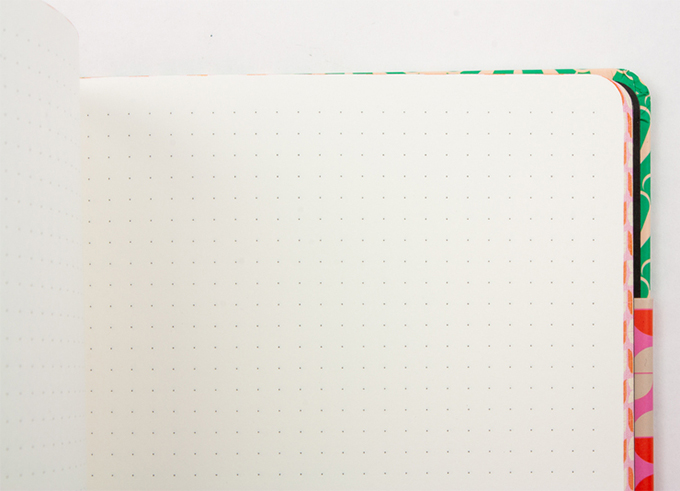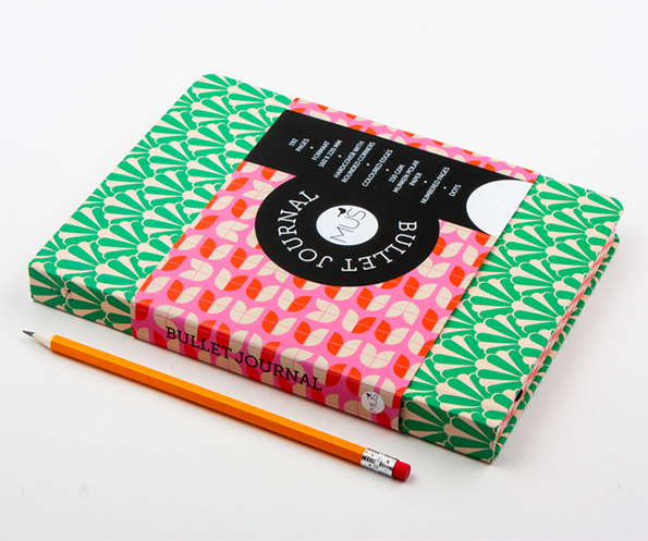 De basis voor een bullet journal is een leeg notitieboek met stipjespapier. Deze heeft een fraaie groene omslag, en ook de zijkant ziet er prachtig uit met een roze opdruk. Een bullet journal heeft een vaste basis die je daarna verder kunt personaliseren. Je kunt hem gebruiken als logboek, habit-tracker, dagboek, of agenda, en versieren met handlettering, doodles, ingewikkelde diagrammen en tekeningen, stickers, of washitape… Dat kan, maar hoeft natuurlijk niet. Je kunt het aanpassen naar je eigen wensen en interesses. Hoe meer creatiefs je met je journal doet, hoe bedrevener je erin wordt.