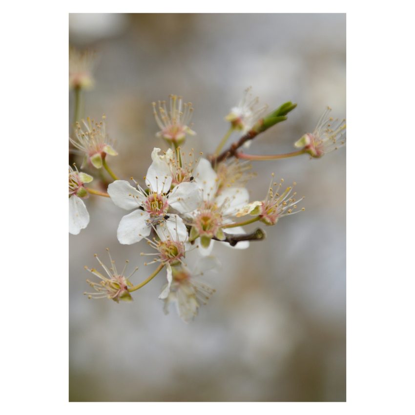 De stemmige foto van bloesem, voor deze condoleancekaart, maakten we tijdens een wandeling op een lentedag in het bos ‘Heumensoord’, vlak bij onze winkel in Brakkenstein in Nijmegen. Deze wenskaart is geschikt om te versturen als condoleance kaart, een mooie kaart om de nabestaanden te condoleren en sterkte toe te wensen. De binnenkant van deze kaart is blanco gelaten, hierdoor heb je genoeg ruimte om je eigen tekst, quote of gedicht op te schrijven.