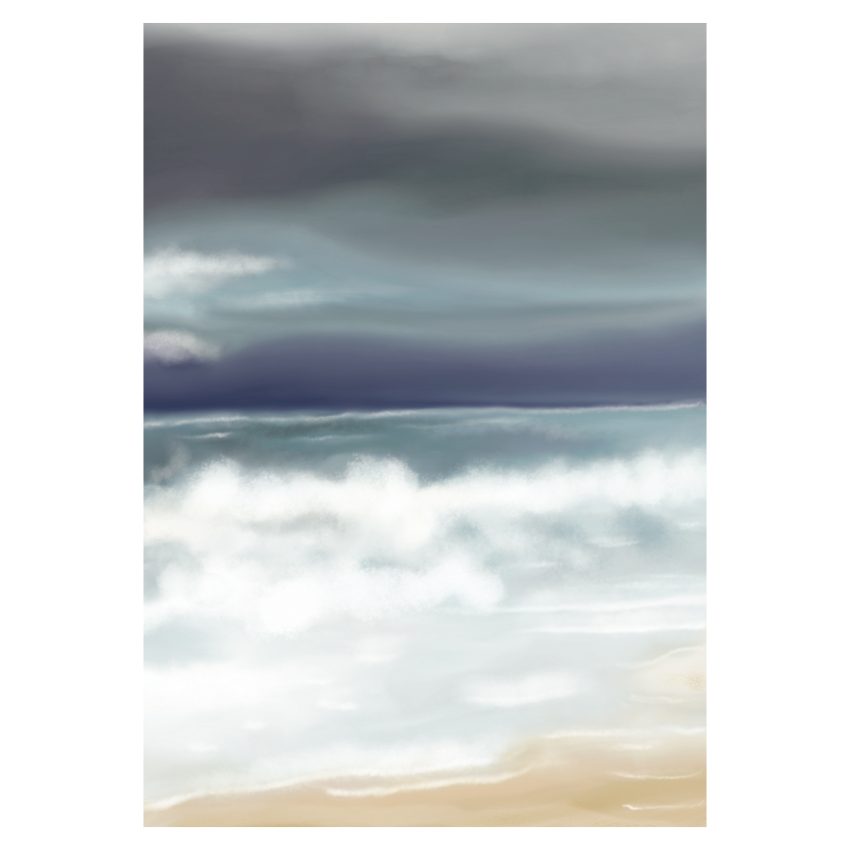 Stemmige condoleance kaart met een geïllustreerde zee, lucht en strand. Kun je wat inspiratie gebruiken voor een passende tekst? We hebben een bord op Pinterest met mooie teksten en gedichten rondom het verlies van een dierbare.