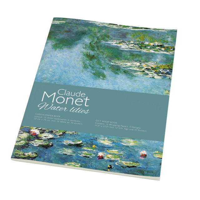 Dit cadeaupapierboek is voorzien met prints van de waterlelies van de Franse impressionist Claude Monet. Inpak-inspiratie nodig? Kijk dan eens op ons Pinterest bord waar we inpaktips verzamelen.