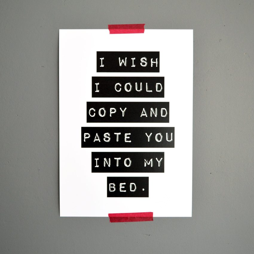 Poster op A4 formaat met de tekst: I wish I could copy and paste you into my bed. Leuk cadeautje voor je geliefde, geef hem bijvoorbeeld cadeau voor Valentijnsdag.