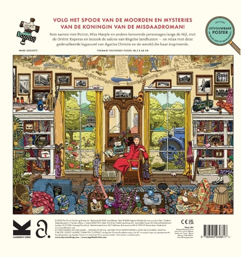 De wereld van Agatha Christie in een puzzel. Creëer de wereld van Agatha Christie en ontdek de bekendste personages tijdens het maken van deze mysterieuze legpuzzel van 1.000 stukjes. Volg het spoor van moord, chantage en geheimzinnigheid, zoals gecreëerd door de koningin van de misdaadboeken. Reis tijdens het maken van deze mysterieuze legpuzzel mee over de Nijl, in de Oriënt-Express en naar de salons van charmante Engelse cottages met Poirot, Miss Marple en andere beroemde personages. Bij de puzzel zit ook een uitvouwbaar postertje met 60 bijzondere en briljante personages en aanwijzingen die samen De wereld van Agatha Christie vormen. Leuk om zelf te maken, met een clubje vrienden, of geef eens een puzzel cadeau! We pakken hem graag mooi voor je in.